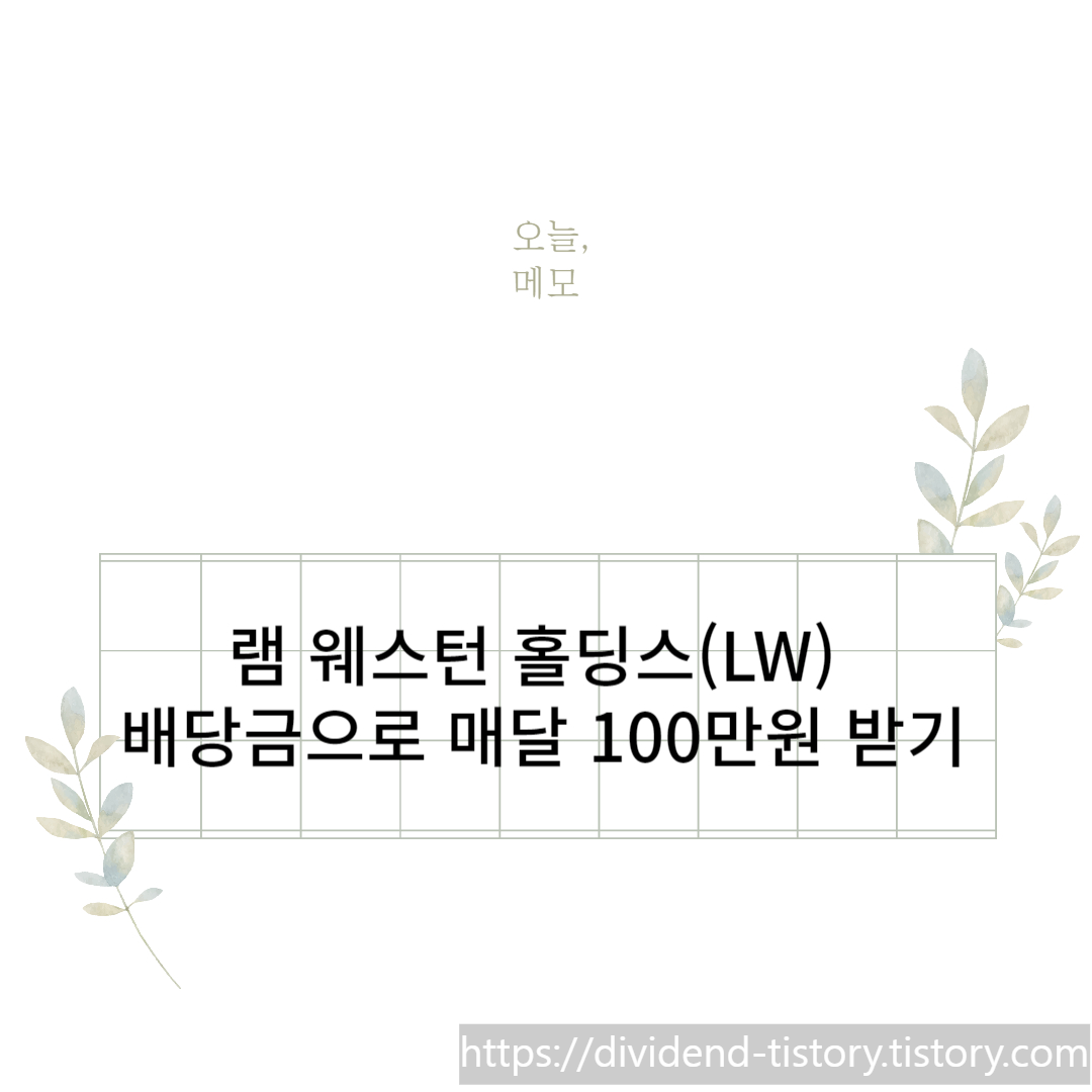 램 웨스턴 홀딩스(LW)로 매달 100만원의 배당금을 받는 방법을 계산해봤습니다.