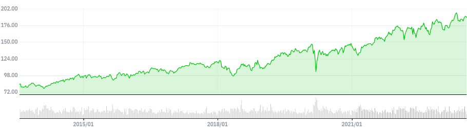10년전인 2013년경에는 약 80달러였던 주식이 2023년에는 188달러로 2배 이상의 주가가 오른 것을 확인할 수 있다.