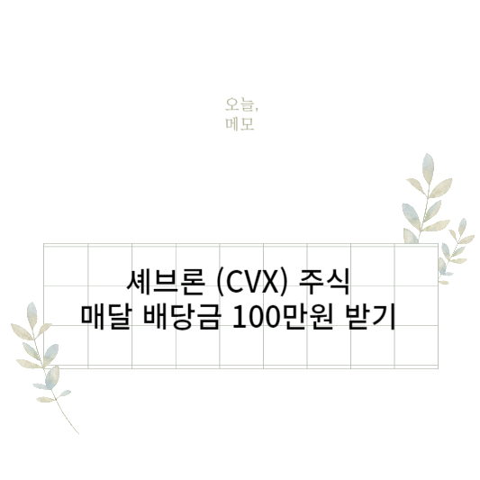 셰브론(CVX) 주식으로 매달 100만 원의 배당금을 받기 위해서는 총 2가지의 방법이 있습니다.