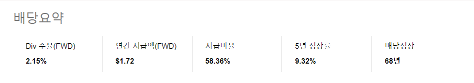 배당 성장을 68년이나 지속한 배당킹 종목 중 하나입니다.
