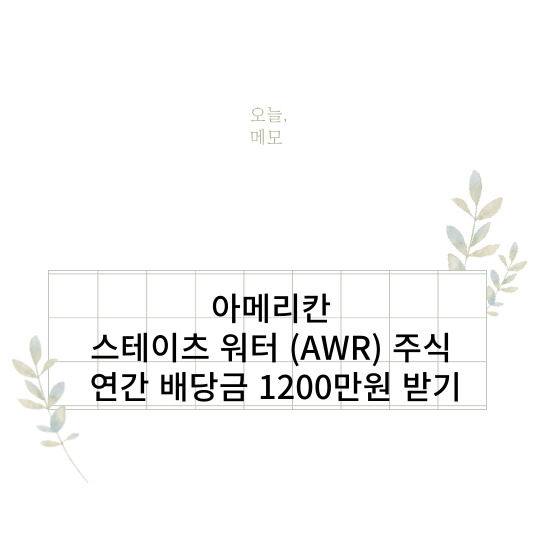 아메리칸 스테이츠 워터(AWR) 주식을 투자해서 연간 1200만 원의 배당금을 받는 방법을 2가지로 알려드리겠습니다.