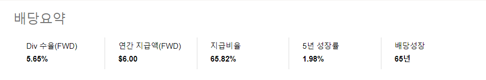 3M(MMM) 주식의 배당은 Seeking Alpha에 따르면 배당 지급 비율 65.82%, 배당 수익률 5.65%, 배당금 6.00$, 배당 5년 성장률 1.98%, 배다 성장 65년으로 나와있습니다.
