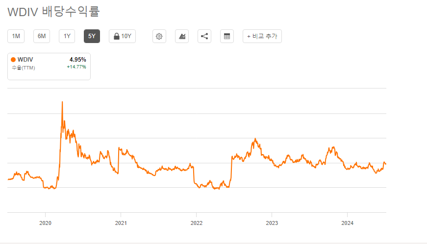낮은 운용 비용: WDIV ETF의 연간 운용 비용은 0.40%로, 비교적 낮은 수준입니다.