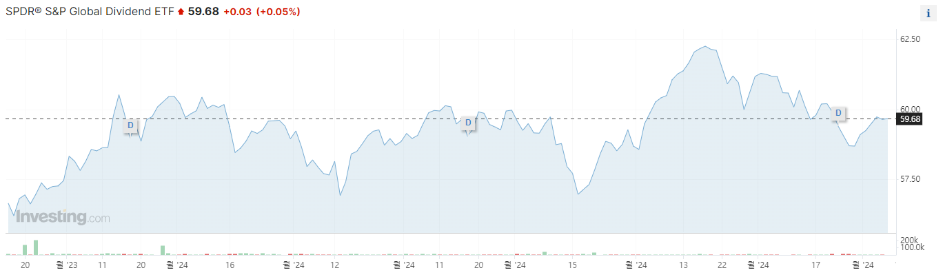 WDIV ETF는 S&P Global Dividend Aristocrats Index를 추종하는 해외 ETF입니다. 이 지수는 최소 10년 이상 연속으로 배당을 늘려온 우량 기업들로 구성되어 있어, 안정적인 배당 수익을 기대할 수 있는 투자 상
