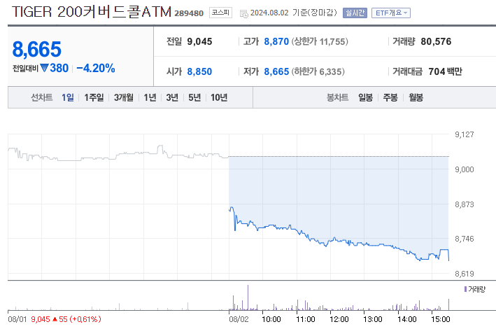 월급쟁이도 시작할 수 있는 ETF 투자, TIGER 200 커버드콜 ATM한국 주식/TIGER ETF 2024. 8. 5. 06:00
