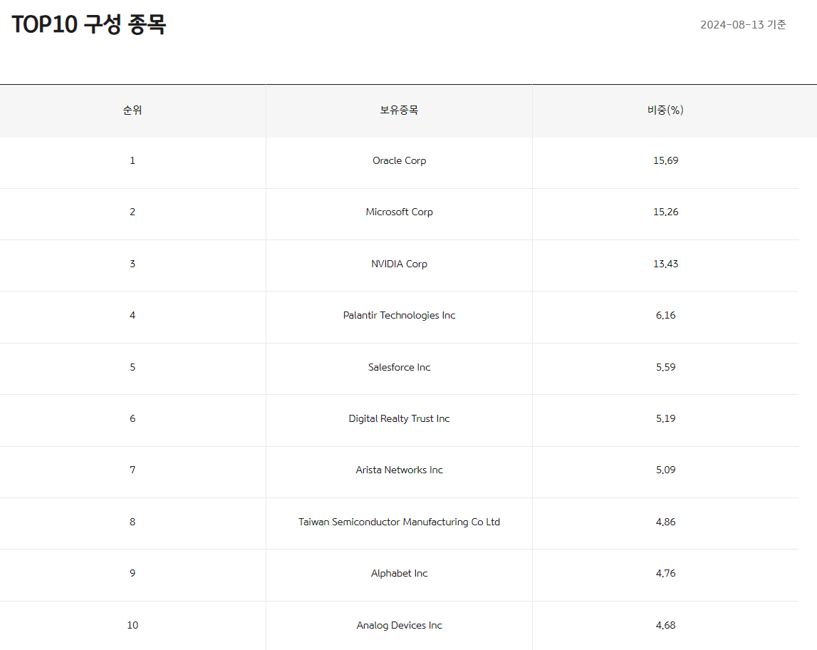 미국 AI시장 성장의 핵심: 미국은 세계적인 AI기술 선도국으로, 엄청난 성장 잠재력을 가지고 있습니다. 이 ETF는 미국 AI시장의 핵심 기업들에 집중 투자하여, AI시장의 성장과 함께 안정적인 수익을 기대할 수 있습니다.