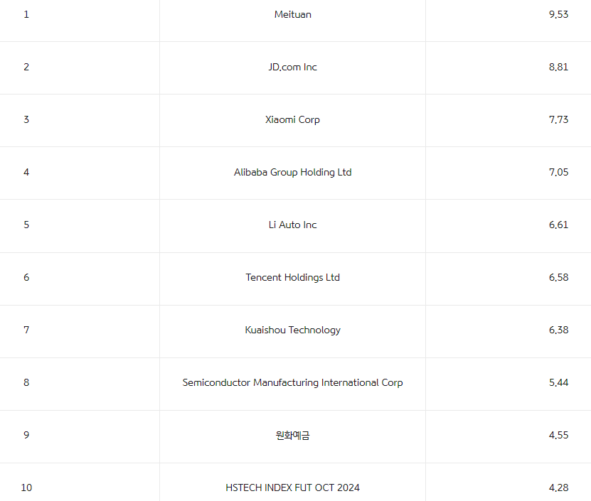 알리바바, 텐센트, 샤오미, 메이투안 등 중국을 대표하는 테크 기업들이 주요 구성 종목입니다.