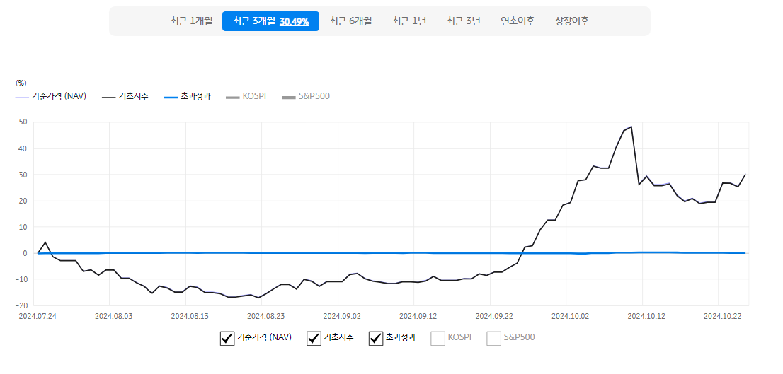 상장 이후로는 수익률이 좋은 편은 아니지만 최근 3개월 동안 30.49%의 수익을 내고 있습니다.