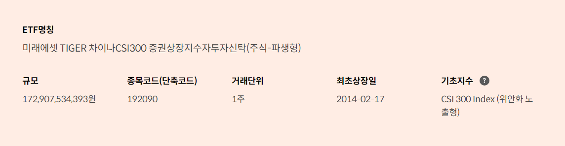 2. TIGER 차이나CSI300(192090)이란?