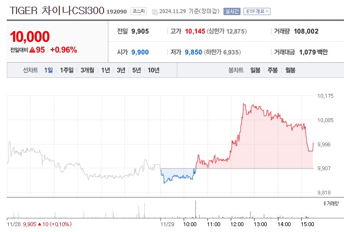 초보 투자자를 위한 중국 시장 TIGER 차이나CSI300(192090)ETF한국 주식/TIGER ETF 2024. 12. 4. 17:00
