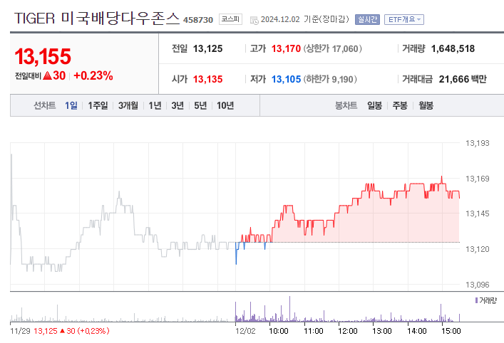안정적인 수익을 위한 최고의 선택! TIGER 미국배당다우존스 ETF (458730)한국 주식/TIGER ETF 2024. 12. 5. 17:00