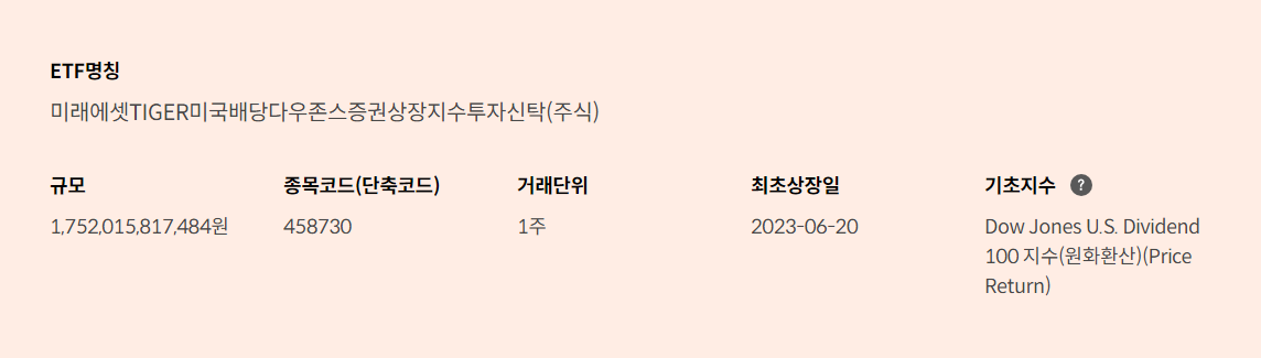 2. TIGER 미국배당다우존스 ETF(458730)의 특징