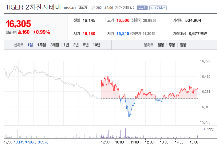 미래의 에너지를 책임지는 투자 TIGER 2차전지테마 ETF (305540)한국 주식/TIGER ETF 2024. 12. 9. 06:00