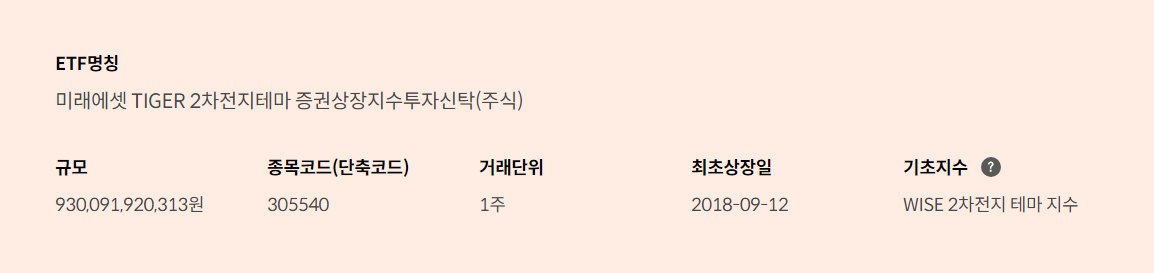 2. TIGER 2차전지테마 ETF(305540)의 특징