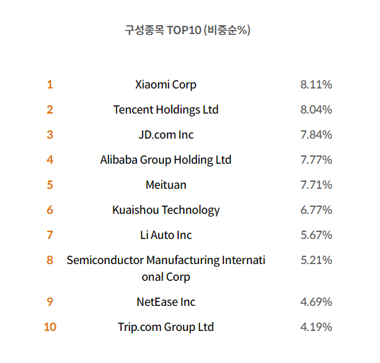 * TIGER 차이나항셍테크 ETF의 구성 종목