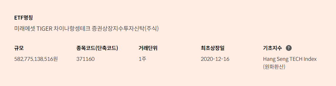 2. TIGER 차이나항셍테크 ETF(371160)의 특징