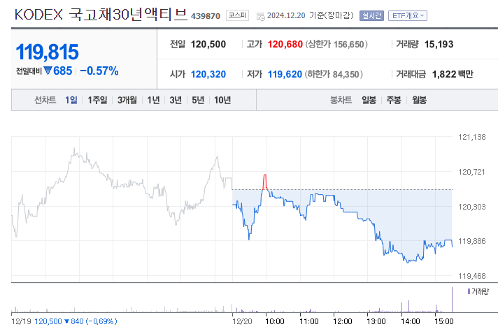 장기 안정성을 추구하는 투자법 KODEX 국고채30년 액티브 (439870)한국 주식/KODEX ETF 2024. 12. 22. 17:00