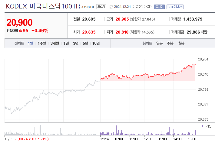미국 기술주에 쉽게 투자하기 KODEX 미국나스닥100TR (379810)한국 주식/KODEX ETF 2024. 12. 25. 22:00