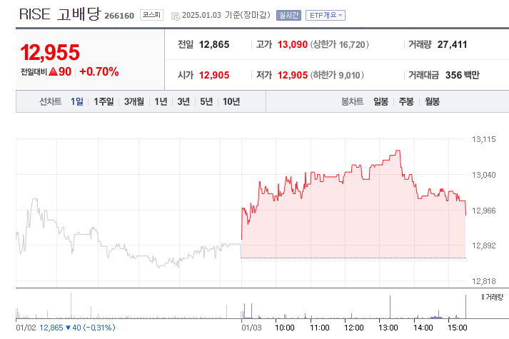 안정적인 수익 RISE 고배당 ETF(266160)로 시작하세요!한국 주식/RISE ETF 2025. 1. 6. 17:00