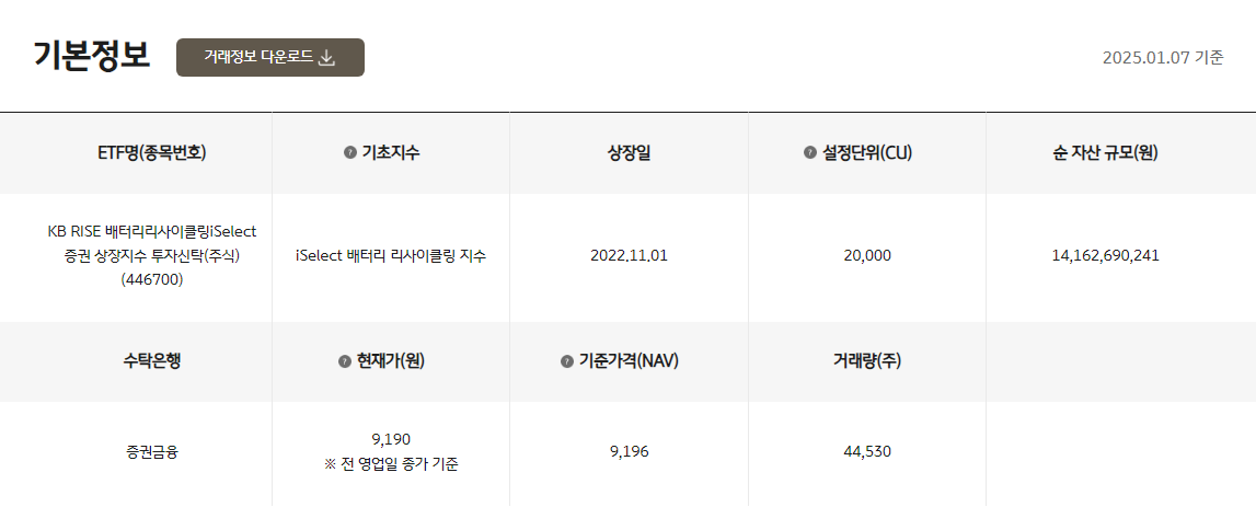 배터리 리사이클링으로 미래를 준비하세요 RISE 배터리 리사이클링 ETF(446700)한국 주식/RISE ETF 2025. 1. 8. 06:00