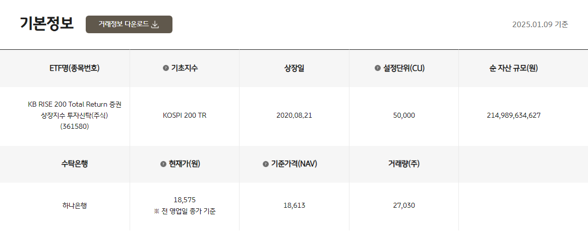 안정적인 투자 RISE 200TR ETF(361580)로 시작하세요한국 주식/RISE ETF 2025. 1. 10. 17:00