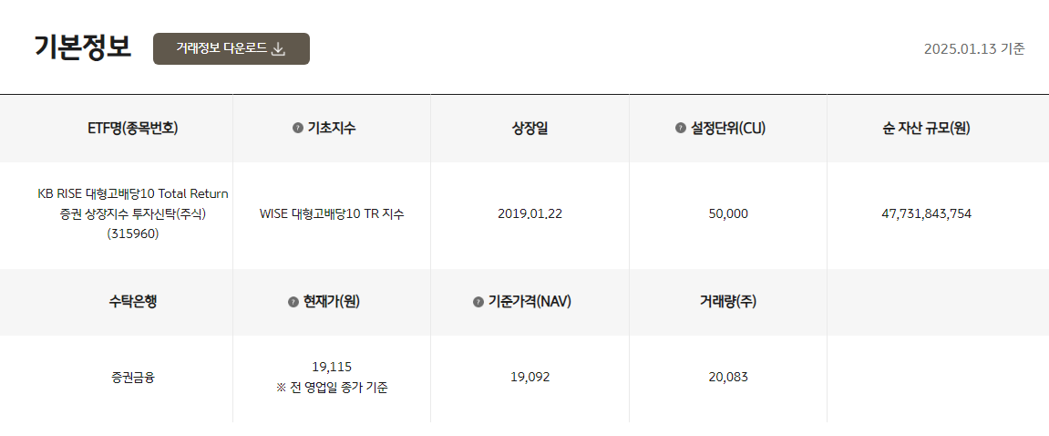 높은 배당 수익 RISE 대형고배당10TR ETF(315960)로 시작하세요한국 주식/RISE ETF 2025. 1. 14. 06:00