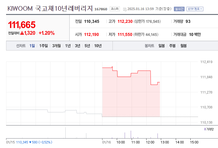 두 배 수익의 유혹, KIWOOM 국고채10년레버리지 (167860) ETF 투자, 신중해야 하는 이유! (※ 레버리지 ETF의 위험성)한국 주식/KIWOOM ETF 2025. 1. 17. 17:00
