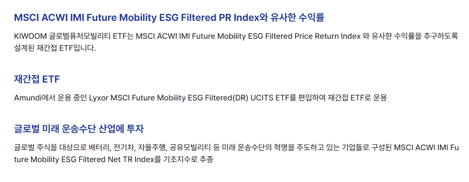 - KIWOOM 글로벌퓨처모빌리티 ETF 투자 시 유의해야 할 점