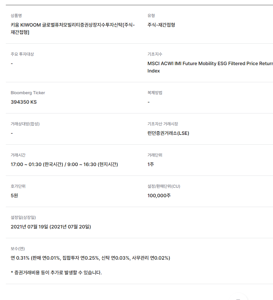 - KIWOOM 글로벌퓨처모빌리티 ETF (394350), 미래를 담은 투자