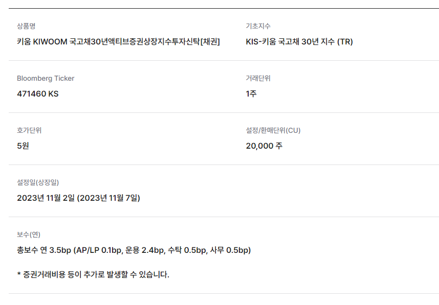 2. KIWOOM 국고채30년 액티브 ETF (471460) 꼼꼼히 알아보기