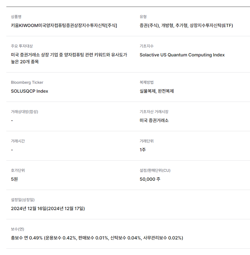 2. KIWOOM 미국양자컴퓨팅 ETF (498270) 꼼꼼히 살펴보기