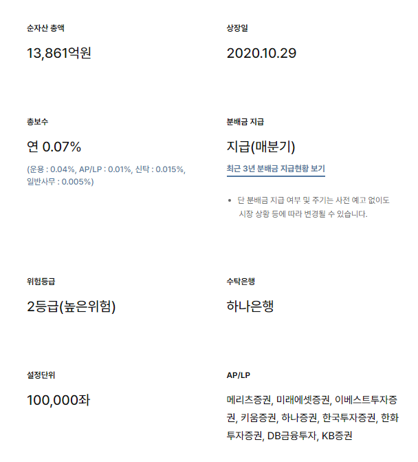 • 💰 낮은 운용 보수 – 연 0.07%의 저렴한 운용 비용으로 장기 투자에 적합합니다.