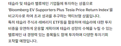 - ✅ 기초지수: 테슬라 및 관련 산업 밸류체인
