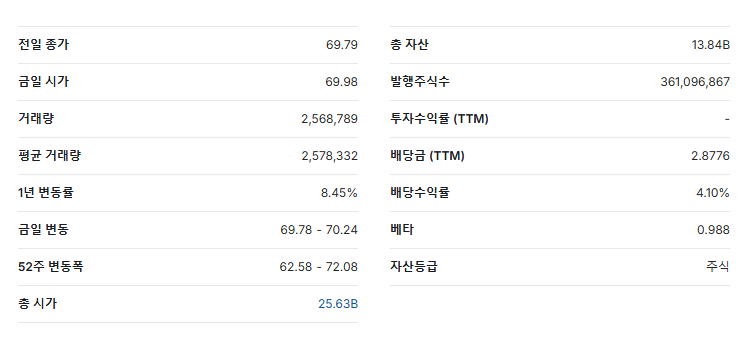 ✔️ 배당 성장률: 연평균 4~5%의 안정적인 성장률을 기록하고 있습니다.