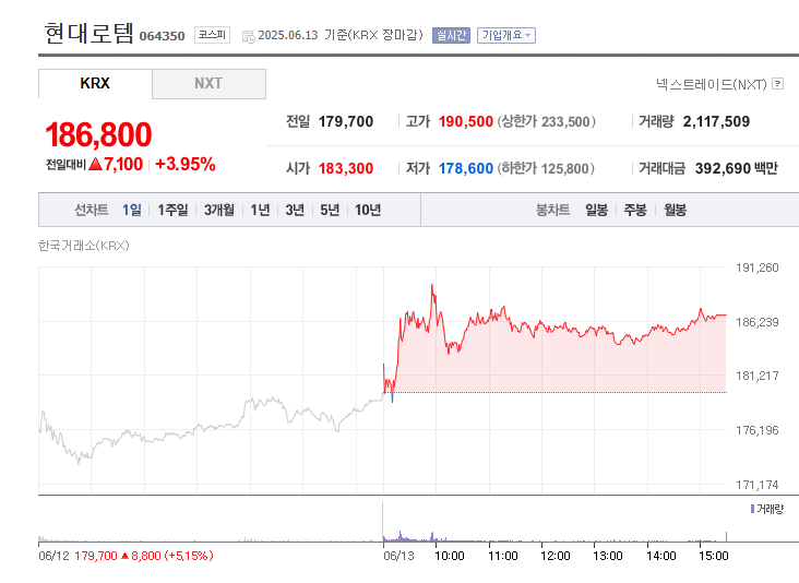 최근 주가(186,800원)는 연초 대비 약 400% 상승하며 코스피 상위 종목으로 부상했습니다.