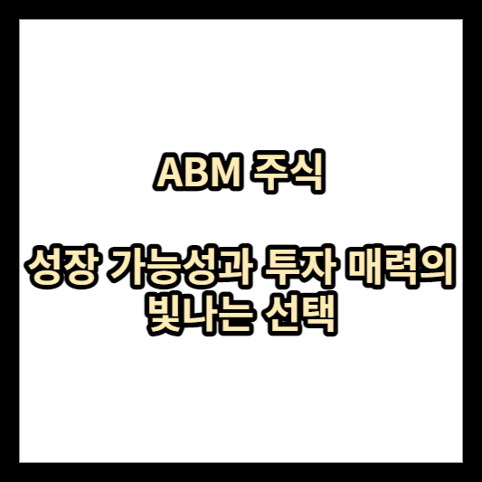 이번 글에서는 ABM(에이비엠 인더스트리) 주식의 성장 가능성과 투자 매력에 대해 다루고자 합니다.