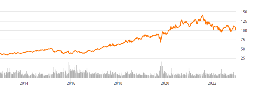 Abbott(애보트 래보라토리) 주식은 최근 몇 년간 상승세를 보여주고 있습니다.